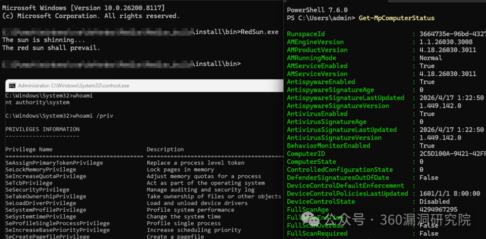 360漏洞研究院已成功复现 Windows Defender 权限提升漏洞,通过该漏洞获取 SYSTEM 权限。